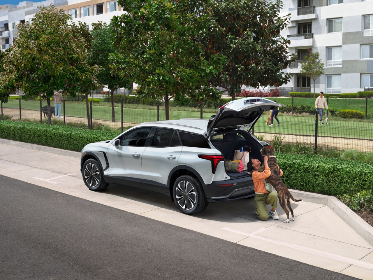 The Chevy Blazer EV makes a bold statement with drivers near Anaheim with its athletic stance and modern proportions. Available wheel sizes range from 19 inches on the LT to extensive 22-inch options on higher trims, each designed to complement the vehicle's striking profile. The hands-free programmable power liftgate adds convenience when your arms are full, automatically opening as you approach the SUV, as long as you have the key fob on you.