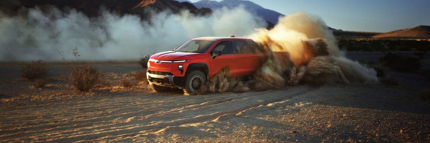 * 2026 Silverado Max Range Trail Boss or Max Range LT. On a full charge. GM-estimated range based on development testing and/or analytical projection consistent with SAE J1634 revision 2017 - MCT and subject to change prior to production. Actual range may vary based on several factors, including temperature, terrain, battery age, loading, and how you use and maintain your vehicle.