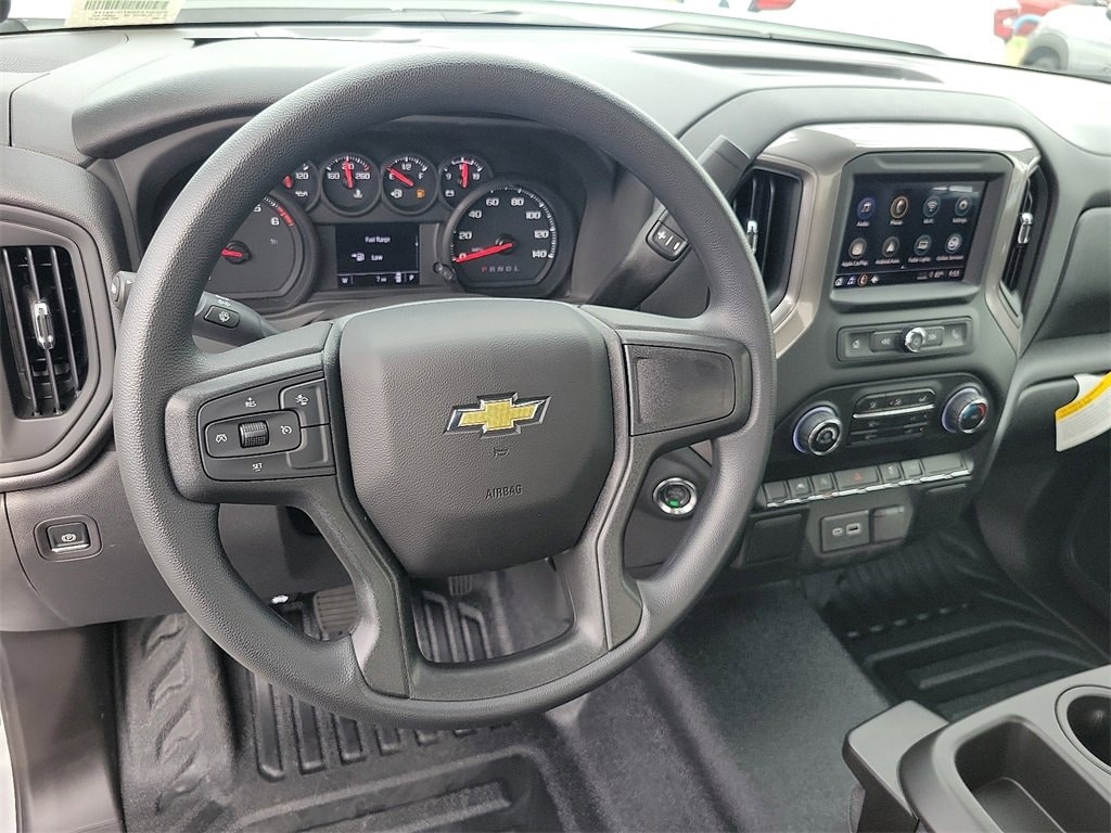 Summit White 2026 Chevrolet Silverado 1500 EcoTec3 5.3L V8 WT 10-Speed Automatic, Black Cloth.